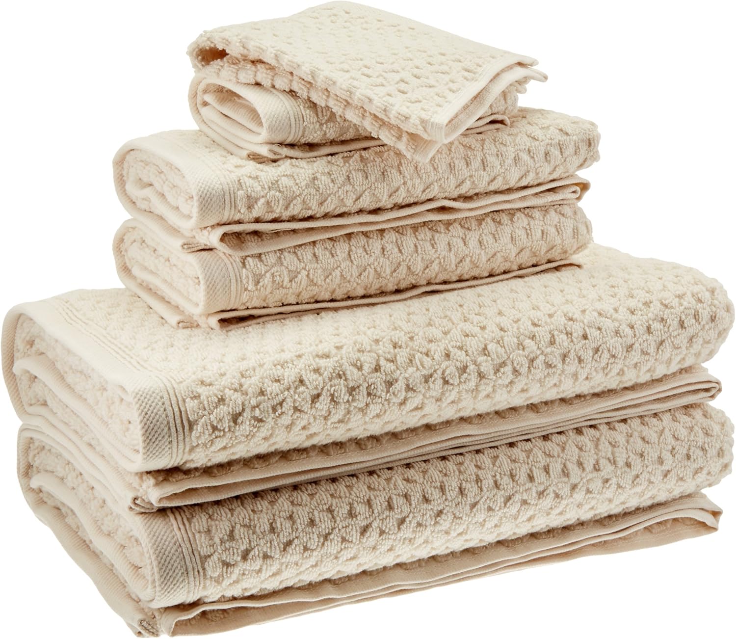 The reversible yarn-dyed design keeps colors bright wash after wash, and the jacquard pattern adds a touch of style to your bathroom. This set includes bath towels, hand towels, and washcloths, perfect for everyday use, guest bathrooms, or as a thoughtful gift.